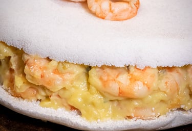 CAMARÕES COM MOLHO ESPECIAL, CATUPIRY CREMOSO E MUSSARELA DERRETIDA